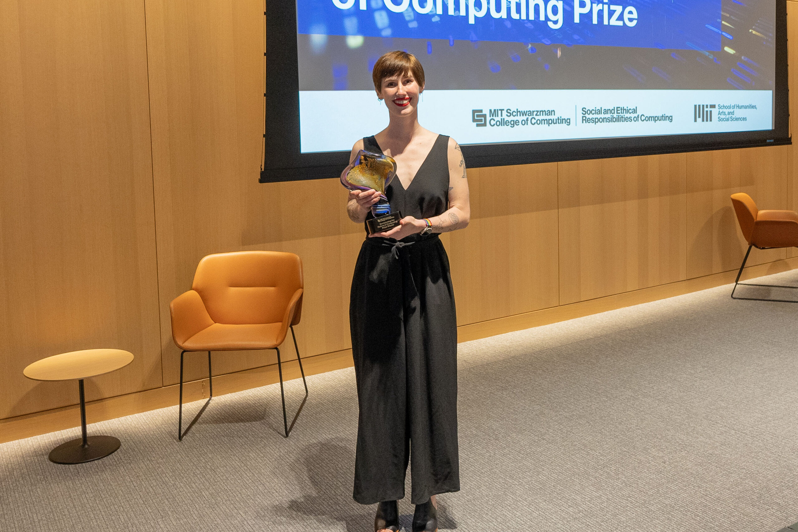 Anfang Mai a Stay Awards Zeremonie wurde festgehalten, wo die Finalisten eingeladen wurden, 20-minütige Präsentationen zu ihren Einträgen zu halten und Fragen des Publikums zu stellen. Quick 140 MIT -Neighborhood -Mitglieder, Familienmitglieder und Freunde nahmen an der Zeremonie teil, um die Finalisten zu unterstützen. Die Zuschauer und die Jury stellten den Moderatoren herausfordernde und nachdenkliche Fragen zu den gesellschaftlichen Auswirkungen ihrer fiktiven Computertechnologien.