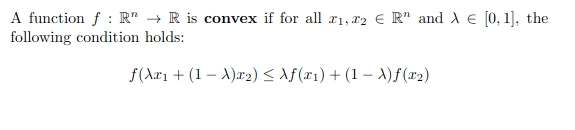 Dies bedeutet, dass in der Teilmenge, die das gesamte Section enthält, das ihnen verbindet, zwei Punkte vorhanden ist, es ist eine konvexe Funktion, sonst ist es eine konkave Funktion.