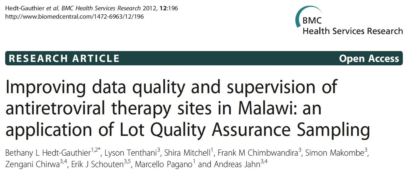 Vierteljährlich wurden diese Behandlungskarten mit dem Klinikregister abgeglichen, um Fehler zu erkennen. Damals führte man in jeder Klinik eine Vollzählung durch. In Hedt-Gauthier et al. (2012) Wir schlugen vor, in jeder Klinik eine Stichprobe der Aufzeichnungen zu entnehmen und anhand einer Entscheidungsregel (Lot High quality Assurance Sampling, LQAS) zu entscheiden, ob die Klinik eine vollständige Zählung der Behandlungskarten erhalten würde.