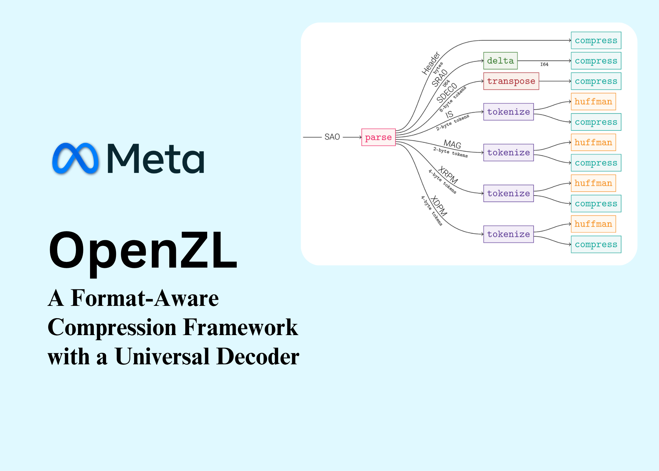 Wie viel Komprimierungsverhältnis und Durchsatz würden Sie zurückgewinnen, wenn Sie einen formatbewussten Graphkompressor trainieren und nur einen selbstbeschreibenden Graphen an einen Universaldecoder senden würden?? Meta AI veröffentlicht OpenZLein Open-Supply-Framework, das erstellt spezialisierte, formatbewusste Kompressoren aus Excessive-Stage-Datenbeschreibungen und gibt a aus selbstbeschreibendes Drahtformat dass ein Common-Decoder kann lesen – Entkopplung der Entwicklung des Kompressors von der Einführung des Lesegeräts. Der Ansatz basiert auf a Graphenmodell der Komprimierung das Pipelines als gerichtete azyklische Graphen (DAGs) modularer Codecs darstellt.